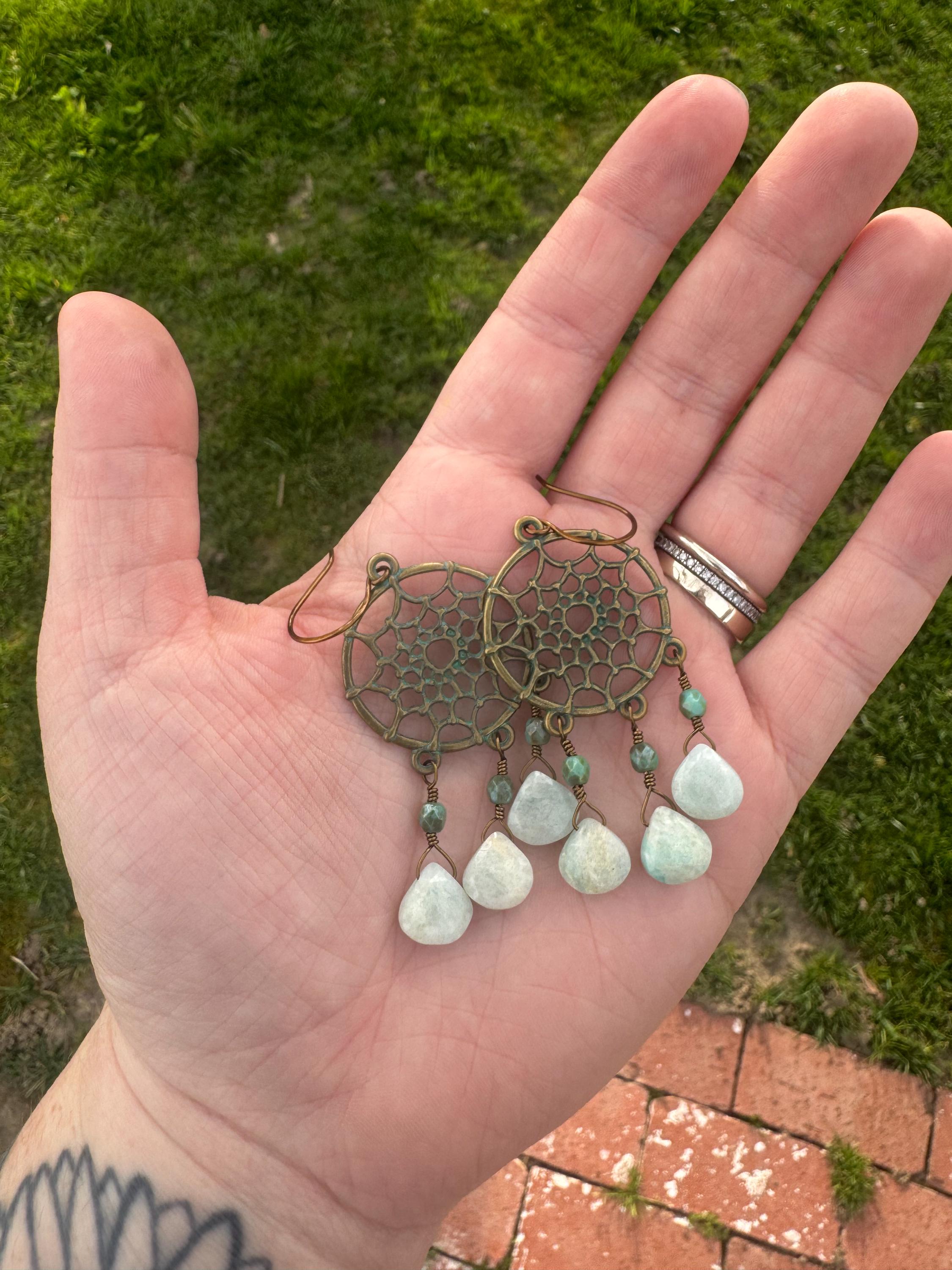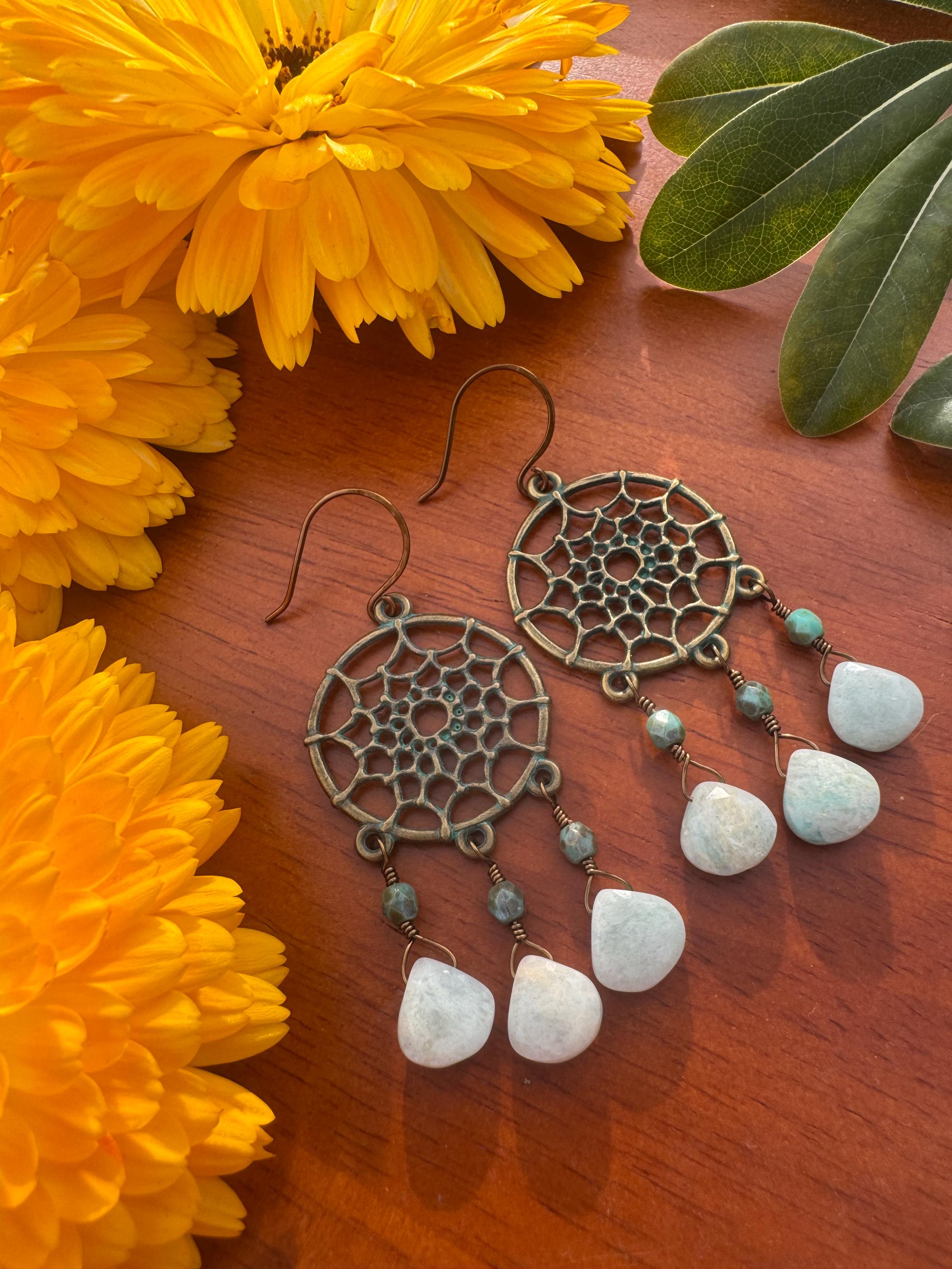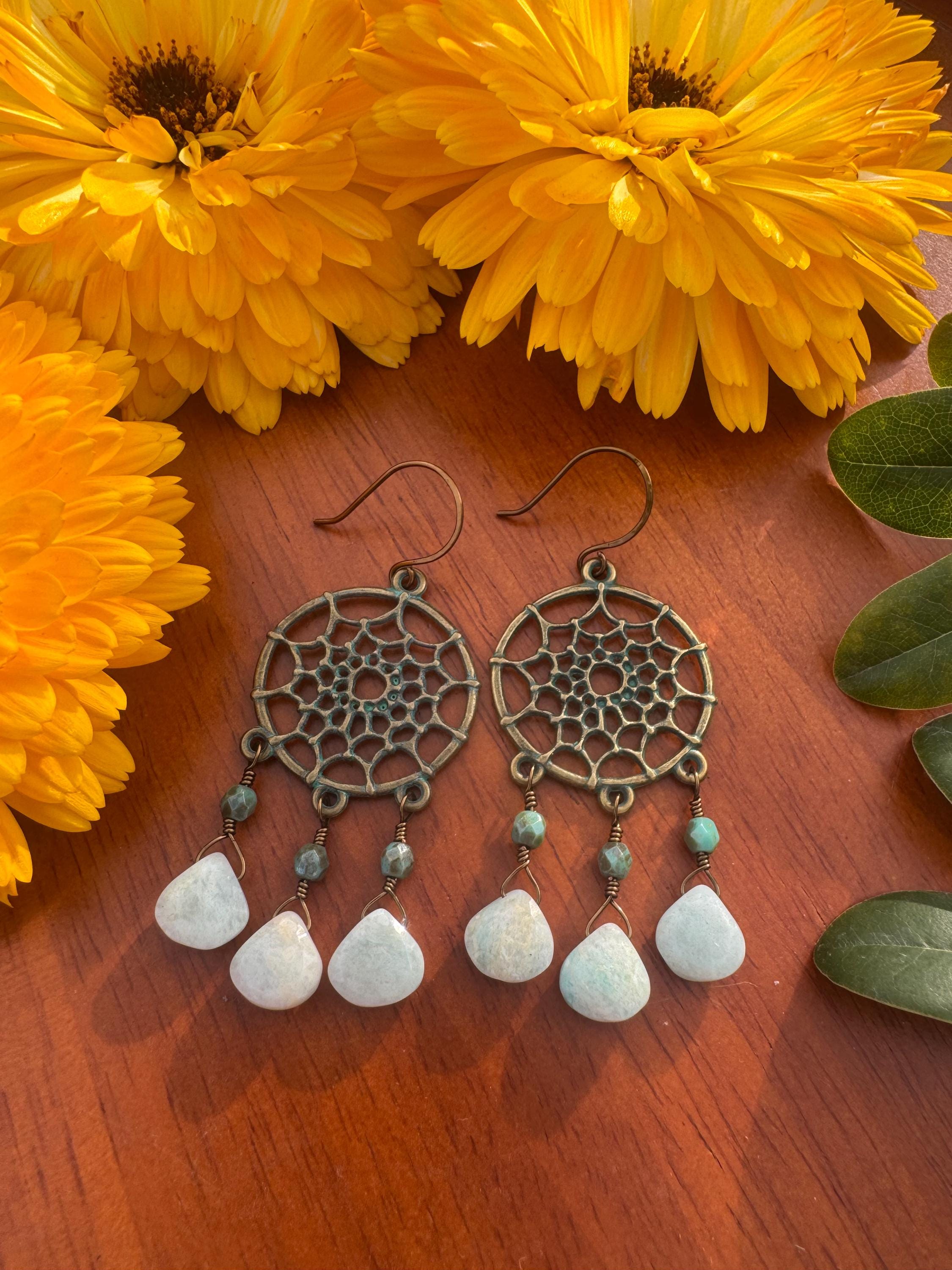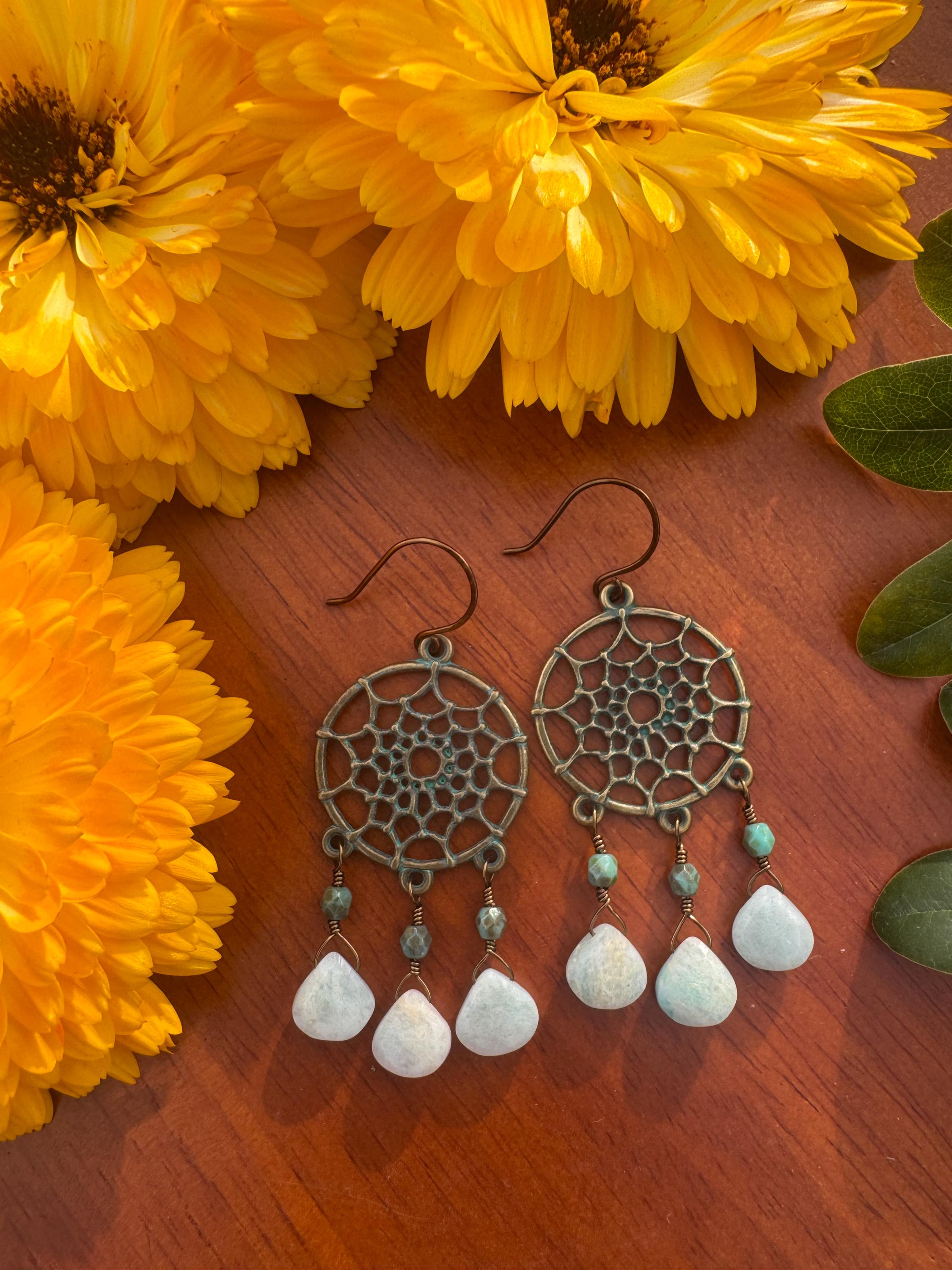 Patina Brass Ethereal Amazonite and Brass Dream Catcher Earrings